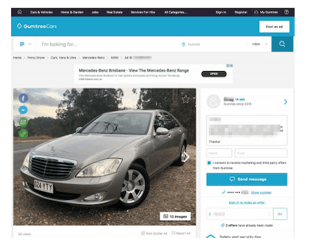 Phase 1 – Victim Bethany puts car up for sale on Gumtree and is contacted by the scammer